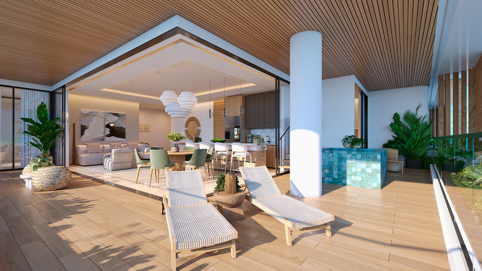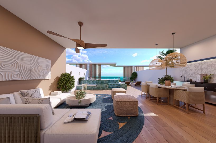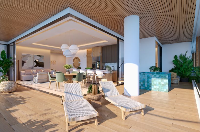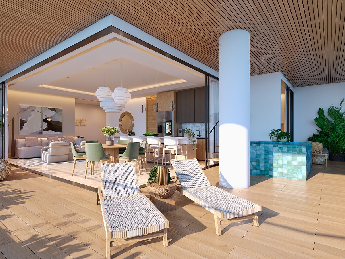 • Second-Floor Residences feature airy interiors, floor-to-ceiling windows, expansive terraces, and private picuzzis that invite seamless indoor-outdoor living.