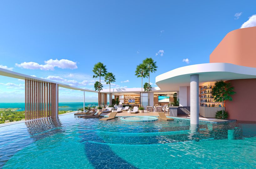 • Fifth-Floor Duplex Penthouses offer an elevated lifestyle with internal staircases leading to a second level featuring an additional bedroom, full bathroom, walk-in closet, spacious den or second living area, a covered terrace, and a private pool—designed for ultimate relaxation.